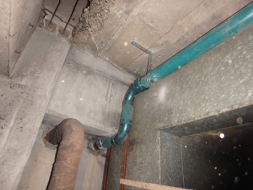 地下ピット内の老朽化した排水管を腐食に強いものに取替えます。
